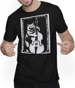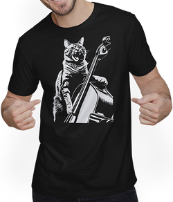 Aufgepasst! Mit Jimbeels steht Dir eine Welt voller Musik und Stil offen. Ein einzigartiges Unisex T-Shirt, welches das monochrome Design einer Katze aufgreift, die einen Kontrabass spielt. Das ideale Stück für Musiker, Bandmitglieder oder all diejenigen, die ein Herz für speziellen Humor und Musik...- $30.00