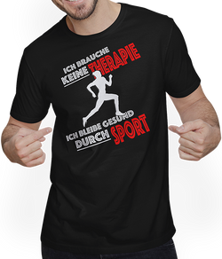 Ob Du ein begeisterter Läufer, ein leidenschaftlicher Jogger, oder einfach jemand bist, der Fitness und körperliche Ertüchtigung liebt - dieses T-Shirt ist für Dich. Verschenke ein Lächeln mit unserem humorvoll gestalteten Unisex-T-Shirt, das die Botschaft "Ich brauche keine Therapie, ich bleibe gesund durch Sport"...- $30.00