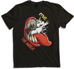 Mit unserem Unisex T-Shirt von Jimbeels mit dem ironischen Slogan "Ich und die Welt" zeigst Du Deinen ganz persönlichen Humor. Ein Must-have für alle, die Einhörner lieben, ihre introvertierte Seite umarmen und dabei einen Hauch schwarzen Humors nicht scheuen. Das perfekte Kleidungsstück für Frauen,...- $30.00
