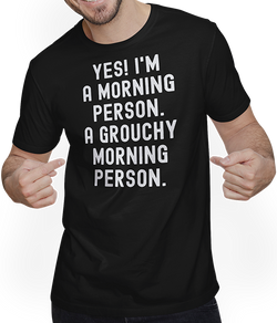 Begrüße jeden neuen Tag mit einer Prise Ironie! Strahle mit unserem Unisex-T-Shirt einen humorvollen Charme aus und teile der Welt mit: "Ja! Ich bin ein Morgenmensch. Ein mürrischer Morgenmensch". Unterstrichen durch einen spielerischen Spruch "I don't like morning people", ist es eine perfekte Ausdrucksform...- $30.00