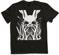 Lass Dich von diesem außergewöhnlichen Unisex T-Shirt aus dem Hause Jimbeels verzaubern, das ein Horror-Kaninchen Design zeigt. Ein Must-have für alle, die den dunklen Humor, Goth Rock und Death Metal lieben oder von Horrorfilmen nicht genug bekommen können. Überrasche damit Deine Batcaver, Metalhead oder...- $30.00
