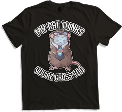 Mit diesem humorvollen Unisex-T-Shirt "My Rat Thinks You're Gross Too" präsentierst Du stolz Deine Liebe zu Deinen kleinen Nagerfreunden. Hierbei handelt es sich um ein schickes Motiv, bei dem eine Ratte mit Gesichtsmaske die Hauptrolle spielt. Es eignet sich hervorragend für all jene, die...- $30.00