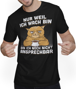 Erwecke Deinen inneren Morgenmuffel mit einem Anflug von Humor und Leichtigkeit. Dieses Unisex-T-Shirt zeigt eine kaffeefreudige, morgenlaunige Katze mit dem Motto: "Nur weil ich wach bin, bin ich noch nicht ansprechbar". Ein Hauch von Selbstironie und Wahrheit, der jeden Spätaufsteher ziert und gerade dadurch...- $30.00