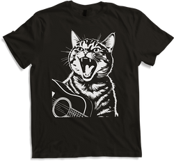 Schreiende Katze Musiker spielt akustische Gitarre
