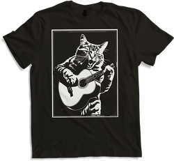 Entdecke das charmante Unisex T-Shirt, das Dein Outfit zum Leben erweckt - ein meisterhaftes Monochrom-Kunstwerk von Jimbeels, auf dem eine musikalische Katze die Akustikgitarre spielt. Ob Siamesische oder Britisch Kurzhaar, es bringt definitiv eine besondere Note in Deine Garderobe! Dieses Stück von Jimbeels ist...- $30.00