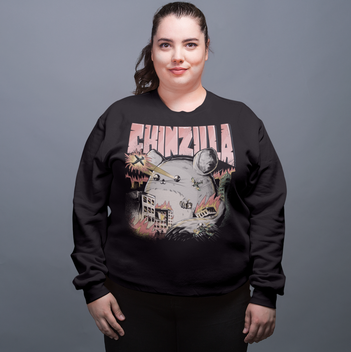 Auf diesem coolen Sweater, der ein perfektes Geschenk zu Weihnachten oder dem Geburtstag für Chinchillahalter ist, ist nicht nur der süße Chinzilla zu sehen, sondern auch noch brennende Gebäude und Flugzeuge.